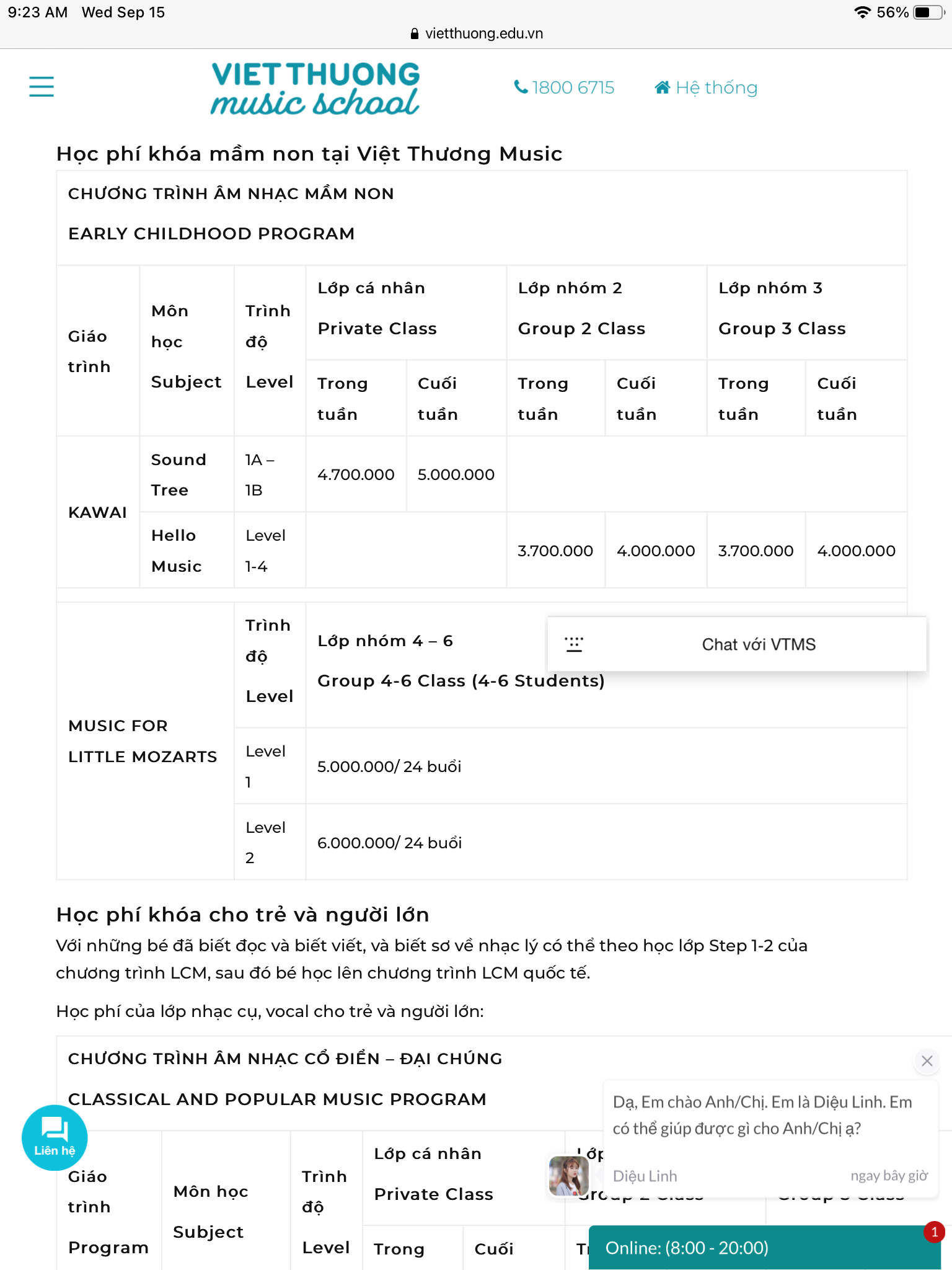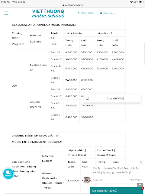 Giá Các gói học nhạc online của Việt Thương Music