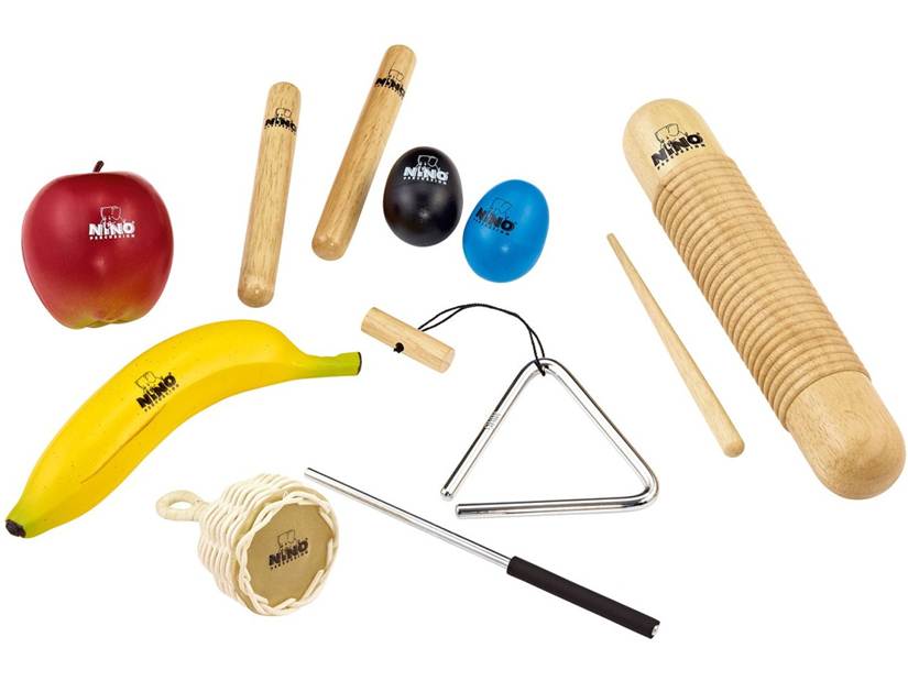 + Trong các nhạc cụ tiết tấu, dư thảo để ra các nhạc cụ dân tộc đã có và thêm hai nhạc cụ triangle (tam giác âm nhạc), Tumpurine (Xúc xắc), chúng tôi đề xuất thêm các nhạc cụ Bell (lục lạc), Maracas (nhạc cụ rung), wood guiro (nhạc cụ rê) vì các em học tạo ra tiết điệu cần đa dạng âm sắc và các nhạc cụ cần học cách cân đối âm lượng mới tạo ra hiệu quả âm nhạc – vì thế các nhạc cụ này người ta thiết kế thành bộ ( để 15, 30, 40 học sinh thay nhau sử dụng luân chuyển để học các loại nhạc cụ khác nhau).
