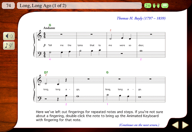 Âm thanh bao gồm cho tất cả các bài hát và bài tập. Có thể tùy chọn phát lại âm thanh bao gồm chỉ piano, chỉ giọng nói và âm thanh đầy đủ có cả biểu diễn piano và giọng hát