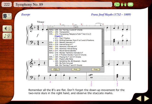 Phản hồi tức thì cho bạn biết khi nào bạn chơi các nốt chính xác khi bạn luyện tập chơi piano qua một giai điệu. Máy tính của bạn sẽ lắng nghe khi bạn chơi và đánh dấu các ghi chú đã phát chính xác bằng màu xanh lục. Khi đạt được mục tiêu chơi đúng giai điệu, bạn sẽ phát hiện ra rằng việc đọc ký hiệu âm nhạc dễ dàng hơn bạn từng nghĩ.
